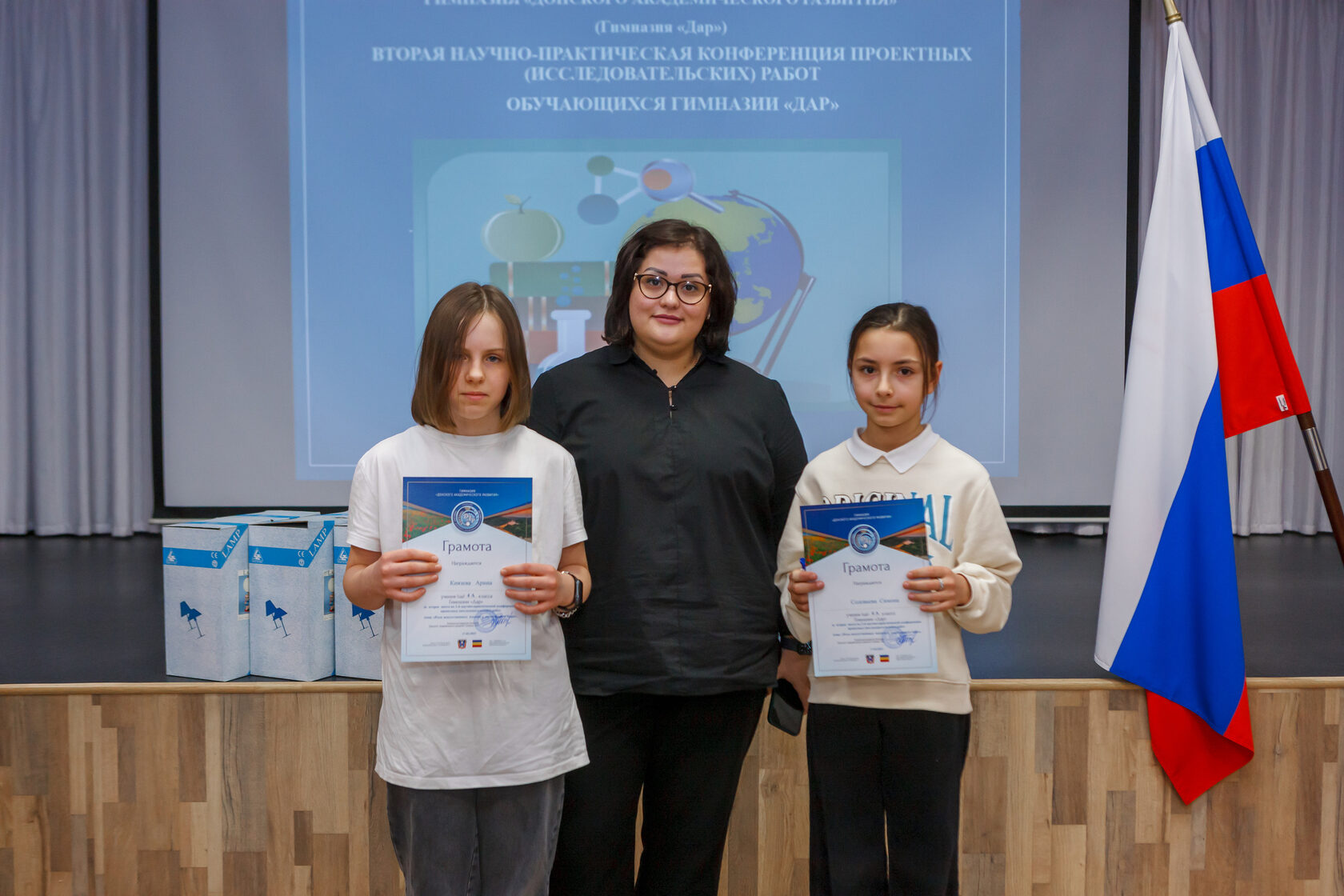 Все участники достойно представили свои работы, вызвав неподдельный интерес всех членов жюри, гостей и других докладчиков. Жюри отметило высокий уровень подготовки гимназистов и оценило вклад каждого участника в исследовательскую деятельность, наградив всех выступающих грамотами и подарками.